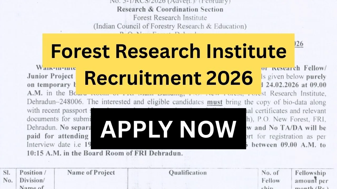 Forest Research Institute Recruitment 2026 > 52 Project Vacancies Announced with Walk-in Dates and Salary Details